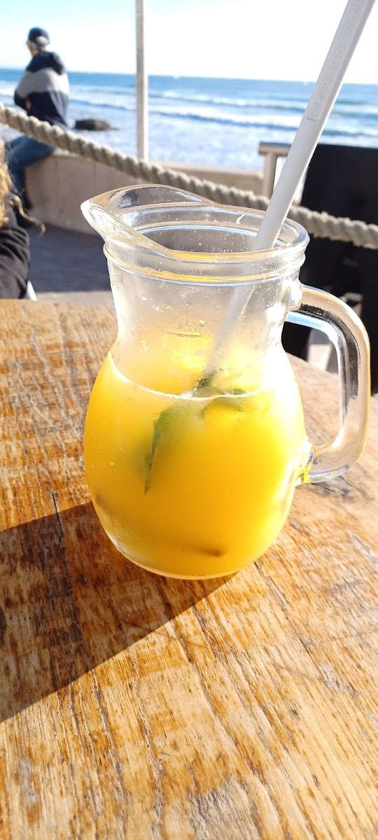Our server was well intentioned and polite but made multiple mistakes. They brought us the wrong appetizer but it looked tasty so we ate it anyways and it was delicious (octopus couscous). My date had the filet (they were out of sirloin) and I had the salmon ceviche. For the price the portion was small, but the food was delicious and the atmosphere was incredible. You can watch the ocean and surfers and waves right from your table, and it’s an excellent spot to see the sun set. If you’re looking for a romantic spot, this is it.